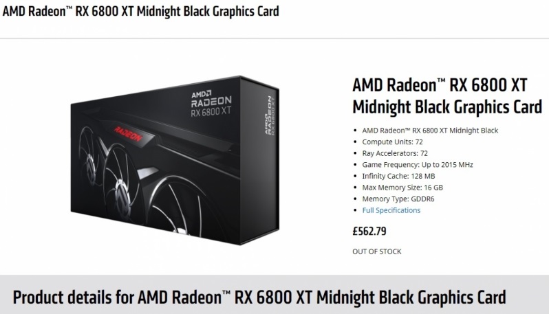 AMD 发布 RX 6800 XT 午夜黑版本,无货