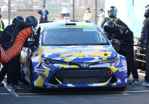 丰田汽车公司首席执行官丰田章男 (Akio Toyoda) 在日本西部的冈山国际赛车场上驾驶的彩色丰田花冠跑车是一款改装的由 GR 雅力士驱动、依靠氢能源的汽车。如果这种动力装置在商业上可行,就可以让内燃机在一个无碳的世界里继续运转。