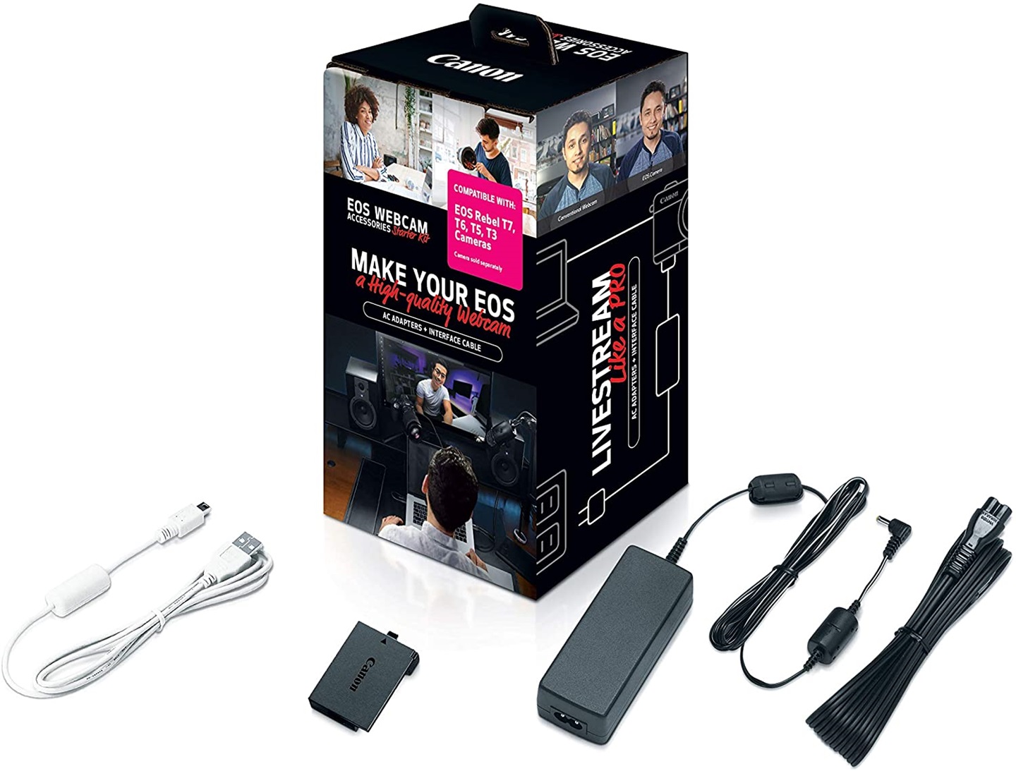 据外媒 The Verge 消息,佳能今日推出了 Canon EOS Webcam Accessories 套件,包含官方制作的假电池、数据线、电源,可以在使用相机进行直播时持续供电。