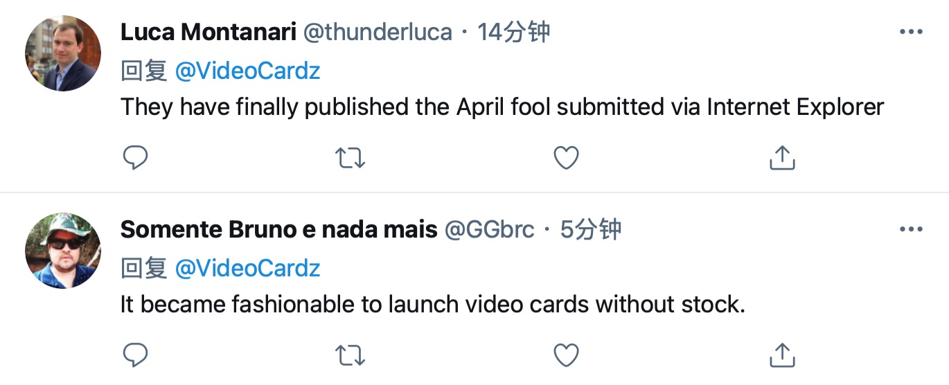 对此,有网友表示,这可能是 AMD 迟来的愚人节作品。还有网友称,发布无货的显卡已经蔚然成风。