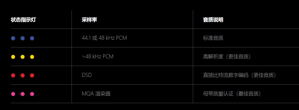 解码方面,该产品搭载 ES9281PRO DAC 芯片,支持 DSDY 与 MQA 解码,并且可以通过指示灯显示当前音频格式。